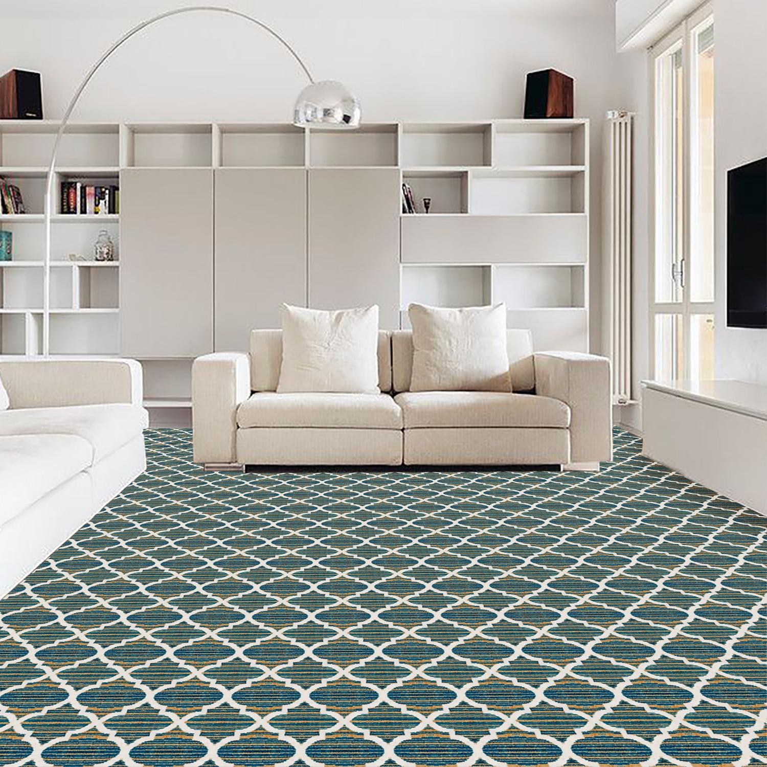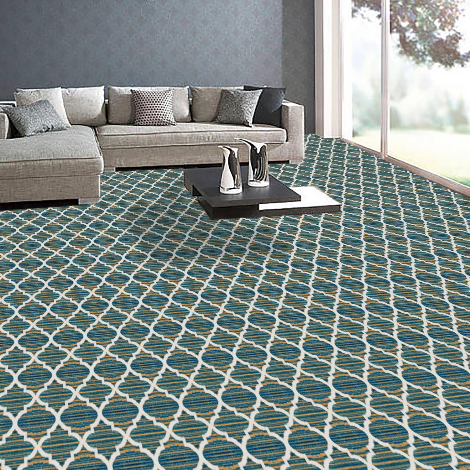 Choosing the best carpet color to make the room look bigger involves selecting lighter, cooler tones (like pale beige, silver, or light gray). The carpet’s natural high sheen also helps reflect light, further enhancing the perception of space in smaller rooms or hallways.